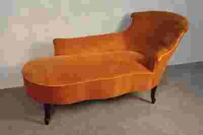 Przepiękny szezlong wykonany na początku ub. wieku, zachowany w bardzo dobrym stanie. Siedzisko jest na sprężynach, tapicerka - wysokiej jakości, miły w dotyku plusz - jest nowa.