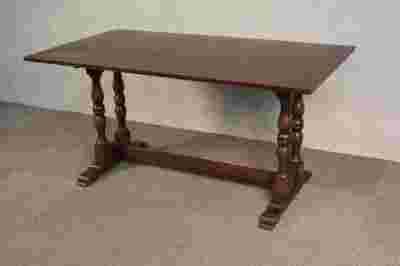 Stylowy, dębowy stół na toczonych nogach wykonany w II połowie ub. wieku.