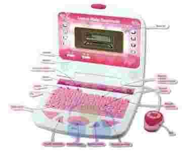Podczas zabawy tym laptopem dziewczynka nauczy się wielu ciekawych rzeczy, pozna litery, cyfry, gry oraz quizy w