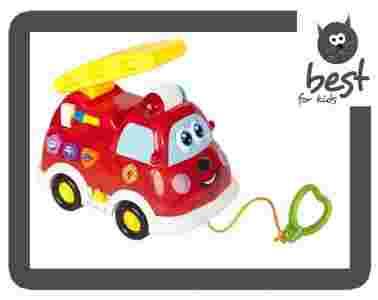 Edukacyjny wóż strazacki dla malucha, który marzy o tym, aby zostać strażakiem. Dziecko podczas zabawy poznaje nazwy pojazdów, zawodów i figur geometrycznych w języku angielskim i hiszpańskim.