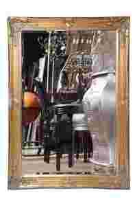 Szkło kryształowe, fazowane, w ramie drewnianej, w kolorze starego złota,