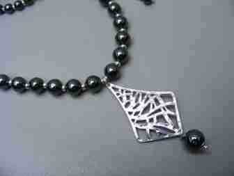 Efektowny czarny naszyjnik HEMATYT wisior komplet