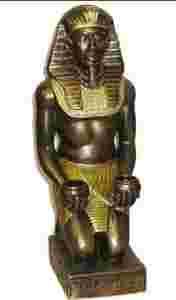 Figura egipska recznie malowana patynowana na stare zloto.W dloniach trzyma naczynka w ktore mozna wlozyc lampiony,swieczki Wykonana z zywicy o wys 55cm.