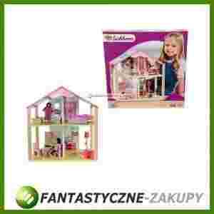 Drewniany, kolorowy, piętrowy domek dla lalek z mebelkami, w zestawie 2 laleczki, drewno dębowe, lipowe i MDF, wymiary: 25x24,5x41 cm, 3, 16 elementów