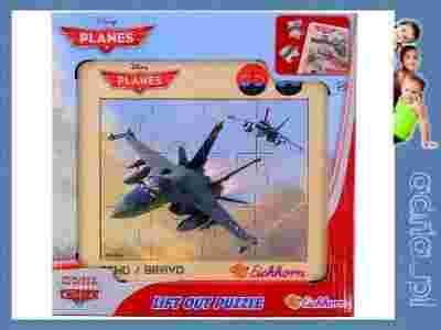 Drewniane puzzle w ramce, z wizerunkami postaci z bajki Samoloty,