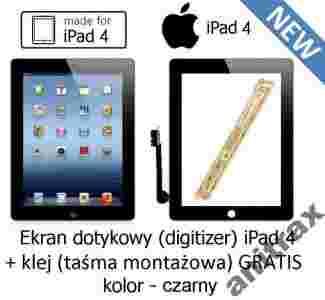 EKRAN DOTYKOWY SZYBKA DIGITIZER iPad 4 Czarny KLEJ