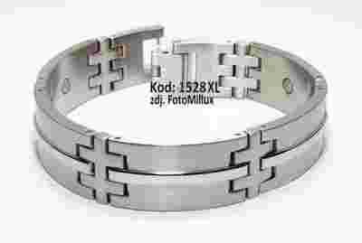 Bransoletka polerowana, wykonana z najwyższej jakości stali medycznej - magnes neodymowy o mocy 1200 Gaussów