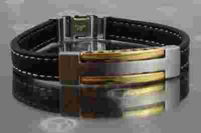 Materiał: Stal, Skóra, Pozłacany,
