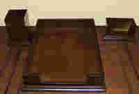 Piękny i oryginalny zestaw na biurko, doskonała i praktyczna ozdoba biurka. W skład zestawu wchodzą, pudełko na korespondencje, stojak na pióra oraz wizytownik. Wszystko idealnie do siebie pasują. Każdy z elementów zestawu wykonany bardzo starannie.