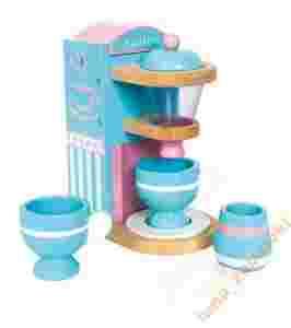 Kubeczki, cukierniczka i ekspres wykonane z drewna, pomalowane w pięknych pastelowych kolorach. Przyjemność dla gospodyni przyjęcia! 2x cukier w kostkach z pomalowanego na biało drewna, 1 wyjmowany filtr uzupełniają zestaw. Akcesoria gratis.