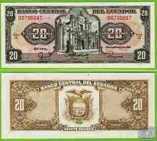 EKWADOR 20 Sucres 1988 P121Aa UNC LQ