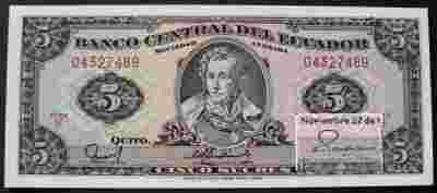 EKWADOR 5 SUCRES 1988 P-113d RÓŻNE PODPIS VOCAL 2