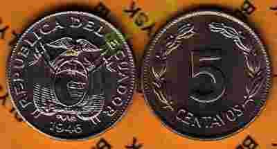 EKWADOR /KM-75b/ 5 CENTAVOS 1946 Stan Monety I/-I