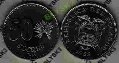 EKWADOR /KM-93 / 50 SUCRES 1988 r.Stan Monety I/-I