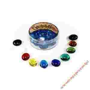Zestaw szklanych znaczników. Zapakowany w okrągłe plastikowe pudełeczko. W zestawie 22 - 25 znaczników.