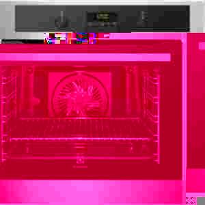 Piekarnik elektryczny o pojemności 74 l, w klasie energetycznej A-20%. Posiada szerokość 59.4 cm, sterowany jest za pomocą 2 chowanych pokręteł oraz przycisków z wyświetlaczem. Wnętrza komory pieczenia pokryte zostało emalią ułatwiającą czyszczenie. Nie powoduje to przylegania resztek potraw do ścianek oraz gwarantuje lepsze zabezpieczenie antykorozyjne. Samoczyszczenie piekarnika w procesie pyrolizy polega na zamianie wszelkich zanieczyszczeń z pieczenia w łatwy do usunięcia popiół. Urządzenie posiada specjalną sondę która kontroluje temperaturę wewnątrz potrawy podczas pieczenia. Piekarnik wyłącza się automatycznie w momencie osiągnięcia zadanej temperatury oraz włącza sygnalizację dźwiękową. Dzięki termosondzie nie ma mowy o niedopieczonej pieczeni. Podczas korzystania z funkcji Pizza działa wentylator wraz z elementem grzejnym w kształcie pierścienia (czyli termoobieg) oraz dolna grzałka. Opcja ta nadaje się idealnie do przyrządzania głęboko zamrożonych potraw jak pizza czy frytki.