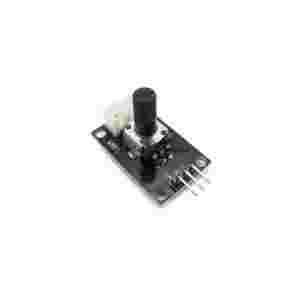 Overview The potentiometer brick produces analog output between 0 and Vcc (5V DC with Iteaduino) on its D1 connector. The D2 connector is not used. The angular range is 300 degrees with a linear change in value. The resistance value is 10k ohms, perfect for Arduino use. This may also be known as a rotary angle sensor.