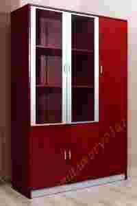 Oferujemy Państwu trzydrzwiową szafę gabinetową wykończoną fornirowanym naturalnym drewnem oraz szklanymi i aluminiowymi elementami.