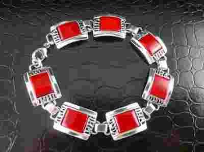 ELEGANCKA BRANSOLETKA Z KAMIENIEM KORAL!SREBRO 925