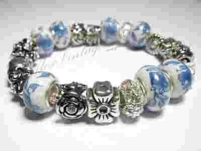Elegancka niebieska bransoletka modułowa kwiaty