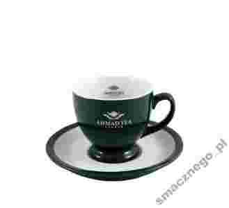 Elegancka zielona filiżanka z talerzykiem (z logo Ahmad Tea London).