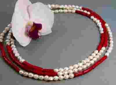 Elegancki naszyjnik preły i koral w srebrze