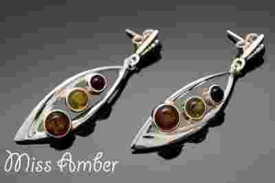 Eleganckie KOLCZYKI ~ BURSZTYN bałtycki 3 KOLORY