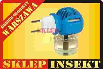 Elektrofumigator z płynem do zwalczania komarów i zabezpieczenia pomieszczeń przed owadami nalatującymi z zewnątrz.