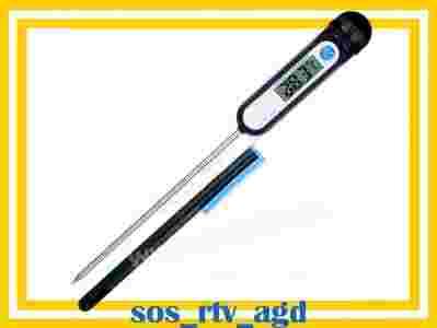 Elektroniczny, precyzyjny szpilkowy termometr z wyświetlaczem LCD doskonale sprawdzi się w gastronomii. Bardzo prosty w obsłudze przyrząd który każdy powinien mieć w swojej kuchni. Wyposażony w etui, które chroni termometr przed uszkodzeniami mechanicznymi. Idealny do pomiaru temperatury mięsa, potraw, ciast, cieczy itp.