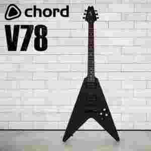 Chord V78 łączy w sobie klasyczny kształt litery V gitary elektrycznej z matowo czarnym korpusem i wybranymi komponentami.