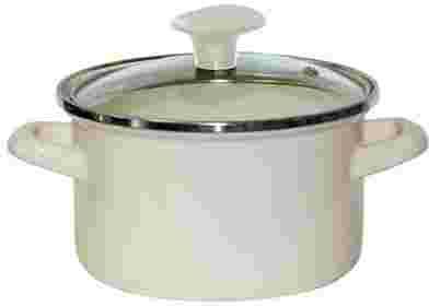 Garnek Prima stalowy pokryty powłoką emaliowaną o średnicy 22 cm, znajduje szerokie zastosowanie w kuchni. Oferowany w zestawie z pokrywą szklaną. Naczynia z linii standard