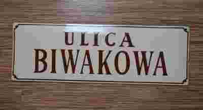 EMALIOWANA TABLICA Z OKRESU PRL ULICA BIWAKOWA