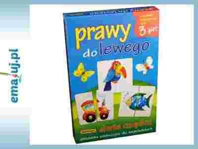 Na podzielonych na dwie części kartonikach znajdują się rysunki różnych przedmiotów, ziwerząt i postaci. Po wylosowaniu kilku kartoników należy odgadnąć, jaki przedmiot jest na rysunku, jaka to jego część lewa, czy prawa, i dobrać jego stronę do lewej dołożyć prawą, a do prawej ...lewą. Na bazie układanki wewnątrz pudełka znajduje się opis 3 gier edukacyjnych