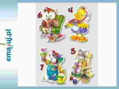 4 x Puzzle 4*5*6*7 PUZZLE KONTUROWE. 4 układanki w 1 pudełku !!! Puzzle dla najmłodszych, składające się z czterech oddzielnych obrazkówo zróżnicowanym stopniu trudności. Żywe kolory, odpowiednio dobrane wzornictwo oraz duże elementy sprawią,że małe dziecko z łatwością ułoży każdy obrazek. Puzzle te zapraszają do poznania fascynującego świata bajek,zwierząt i motoryzacji. Pomogą rozwinąć zdolność kojarzenia oraz zwiększyć sprawnośćmanualną. 4 obrazki w formacie ok. 32 x 23 cm, puzzle konturowe.Puzzle przeznaczone dla dzieci w wieku od 2 lat.