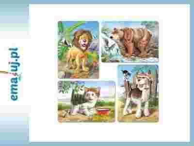 4 x Puzzle 8*12*15*20. 4 układanki w 1 pudełku !!! to kontynuacja serii dla najmłodszych 4xPuzzle 4*5*6*7. Każde pudełko zawiera cztery tematycznie powiązane obrazki o różnym poziomie trudności. Dzięki temu maluch może stopniowo stawiać czoła coraz trudniejszym wyzwaniom, czerpiąc satysfakcję z każdego kolejnego sukcesu. Duże elementy oraz zaokrąglone krawędzie obrazków powodują, iż produkt ten jest bardzo bezpieczny, a zarazem trwały i estetyczny. Bogate i różnorodne wzornictwo umożliwi dziecku poszerzenie wiedzy o otaczającym je świecie oraz zainspiruje do rozszerzenia kręgu swoich zainteresowań.4 obrazki w formacie 32 x 23 cm.Puzzle przeznaczone dla dzieci od 3 lat.