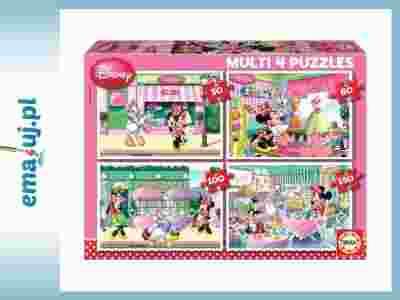 Wysokiej jakości puzzle Educa. Piękne bajkowe motywy z przygodami Myszki Minnie, kolorystyka i 4 układanki o różnej ilości elementów mogą stanowić wiele poziomów trudności dla dzieci w różnym wieku. Poszczególne elementy idealnie do siebie pasują, dzięki czemu dzieciom łatwo jest połączyć poszczególne elementy układnaki.