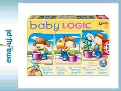 Baby Logic to układanka logiczna dla najmłodszych. Poprzez układanie puzzli w sposób logicznych po sobie działań, powstaje krótka historyjka przedstawiającą powiązane z sobą czynności, aby uzyskać odpowiedni efekt, np. dziecko poznaje co zrobić, aby wyrosła roslinka: musi zatem zasiać nasionko, podlewać i uzyska piękny kwiat. Układanki rozwiją wyobraźnię i ruchy manualne, pudełko zawiera 18 elementów.