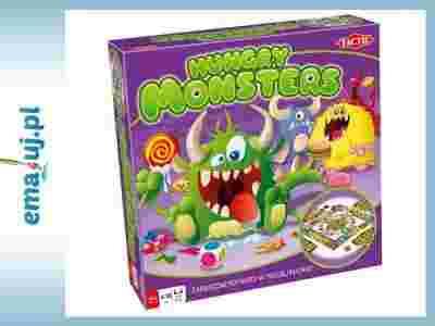 POTWORY LUBIĄ JEŚĆ! Hungry Monsters to gra dla łakomczuchów w każdym wieku! Potwory są głodne, a głód ten zaspokoić nie jest łatwo. Krążą więc po kuchni w poszukiwaniu pysznych kąsków. Zadaniem każdego zawodnika jest zapełnienie paszczy jednego potwora. Potwory przemieszczają się po planszy, a gracze wykonują zadania, dzięki którym zdobywają krążki z jedzeniem dla swoich podopiecznych... Zawartość: Plansza, 4 potwory (+naklejki), 4 paszcze potworów, 60 żetonów, 2 kostki (+1 arkusz z naklejkami), zasady. Gra przeznaczona dla 2 do 4 osób w wieku od 4 do 10 lat.