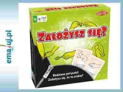 PRZEKONAJ SIĘ, KTO TO POTRAFI! W tej zabawnej grze rodzinnej wykonujesz różne zadania lub odpowiadasz na pytania. Inne osoby obstawiają twój sukces lub porażkę. Jeśli odgadną, wygrywają podwójną wartość obstawionych punktów. Twój sukces to także ekstra punkty dla ciebie! Założysz się? dzięki swojej interaktywności i zabawnym zadaniom wciąga tak dorosłych jak i dzieci. To gra zarówno na długie wieczory w rodzinnym gronie jak i na szaloną imprezę! Zawartość: 1 plansza, 288 kart zadań (144 zręcznościowych, 144 umysłowych), 12 kart TAK/NIE Talia banknotów , 6 pionków, 1 notatnik, 1 kostka, 3 klepsydry Gra przeznaczona dla 3 do 6 graczy w wieku od 7 lat.