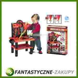 Zabawka posiada solidny stolik z dodatkową podstawką i pojemniczkami na drobiazgi oraz wygodną tablicę narzędziową z dziurkami i uchwytami, które pozwalają zachować porządek wśród dużej liczby przeróżnych narzędzi.