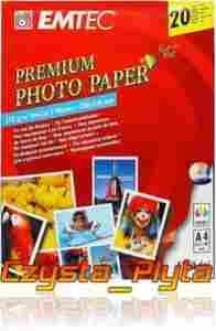 Emtec Premium Photo Paper to idealny wybór do zadrukowania swojego ulubionego zdjęcia. Papier ten posiada gramaturę 170g/m2 i można go zadrukować w rozdzielczości 5760 dpi. Papier jest docinany na wymiary 180x130 mm czyli do wymiaru zdjęcia. Na jednym arkuszu A4 znajdują się dwa miejsca na zadrukowanie.