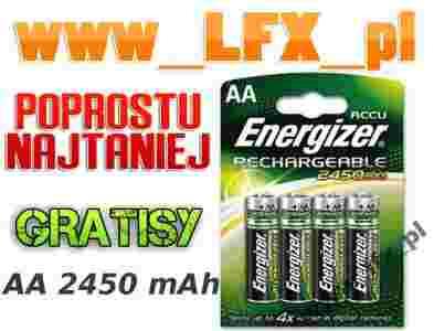 Akumulatorki Energizer HR 6 (komplet 4 sztuki), pojemność 2450 mAh - jedna z najwyższych dostępnych obecnie na rynku. Oczywiście o budowie Ni-MH, czyli ze zminimalizowanym efektem pamięci. Przyjazne dla środowiska. Idealne dla urządzeń o dużym zapotrzebowaniu na energię.