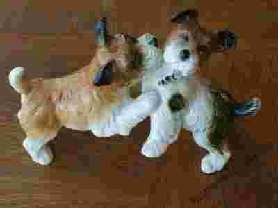 PIĘKNA PORCELANOWA FIGURA BAWIĄCE SIĘ PSY - TERIERY, POCHODZĄCA Z RENOMOWANEJ WYTWÓRNI Porzellanfabrik Karl Ens (sygnatura na zdjęciu)