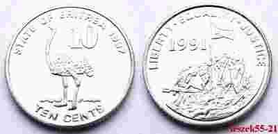 ERYTREA 10 CENTS 1997 ZWIERZĘTA STRUŚ MENNICZA