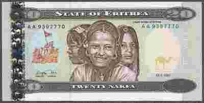 Erytrea - 20 nakfa 1997 P4 UNC traktor i wielbłądy