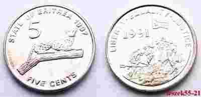 ERYTREA 5 CENTS 1997 ZWIERZĘTA LAMPART MENNICZA