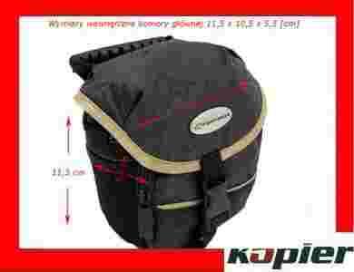Średniej wielkości torba na aparat i akcesoria fotograficzne. Z boku posiada dwie siatkowe kieszonki. Przednia klapa zamykana na plastikowy zatrzask wewnątrz posiada zamykaną na zamek kieszeń siatkową. Przednia kieszeń zamykana na zamek. Wewnątrz umieszczona jest kieszeń siatkowa zamykana na zamek oraz dwie kieszonki na akcesoria. Do torby dołączony został funkcjonalny pasek z nakładką przyłączany za pomocą dwóch karabinków.