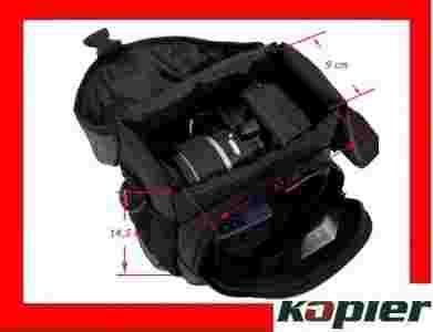 Duża, funkcjonalna torba na aparat i akcesoria. Z boków posiada siatkowe kieszonki. Przednia klapa zamykana na plastikowy zatrzask. Wewnątrz, główna komora dodatkowo chroniona od góry osłoną zamykaną na rzepa. Została ona również wyposażona została w ruchomą ściankę mocowaną na rzepa umożliwiającą dostosowanie wielkości komory do wymiarów aparatu. Przednia kieszeń zamykana na zamek posiada wewnętrzną kieszonkę siatkową również zamykaną na zamek oraz dwie kieszonki na akcesoria. U góry wzmocniony uchwyt do przenoszenia. Do torby dołączony został funkcjonalny pasek z nakładką przyłączany za pomocą dwóch karabinków.