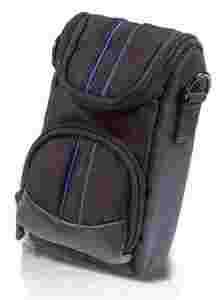 Praktyczne etui na aparat składające się z dwóch przedziałów, szlufki na rzep oraz paseka na ramię.