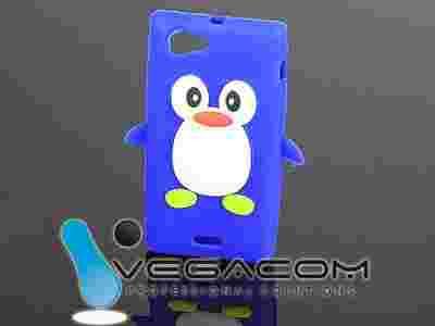 Oryginalne etui PINGWINEK do SONY XPERIA J ST26i ST26a. Kolor NIEBIESKI. Dopasowana osłona ochronna z elastycznego silikonu nowej generacji TPU GEL i gumy na tylni panel telefonu.